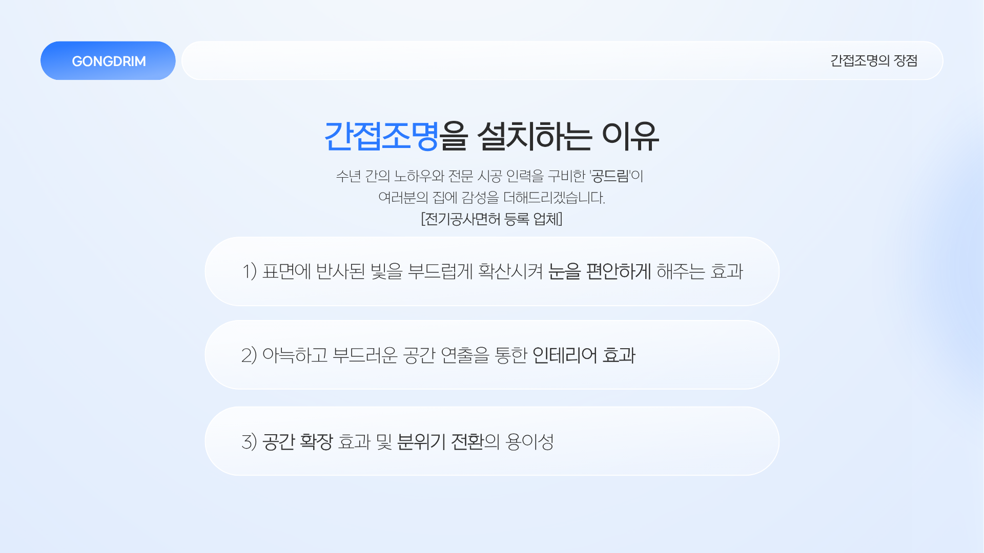 최고의 시공을 자랑하는 간접조명 & 벽걸이TV 전문기업