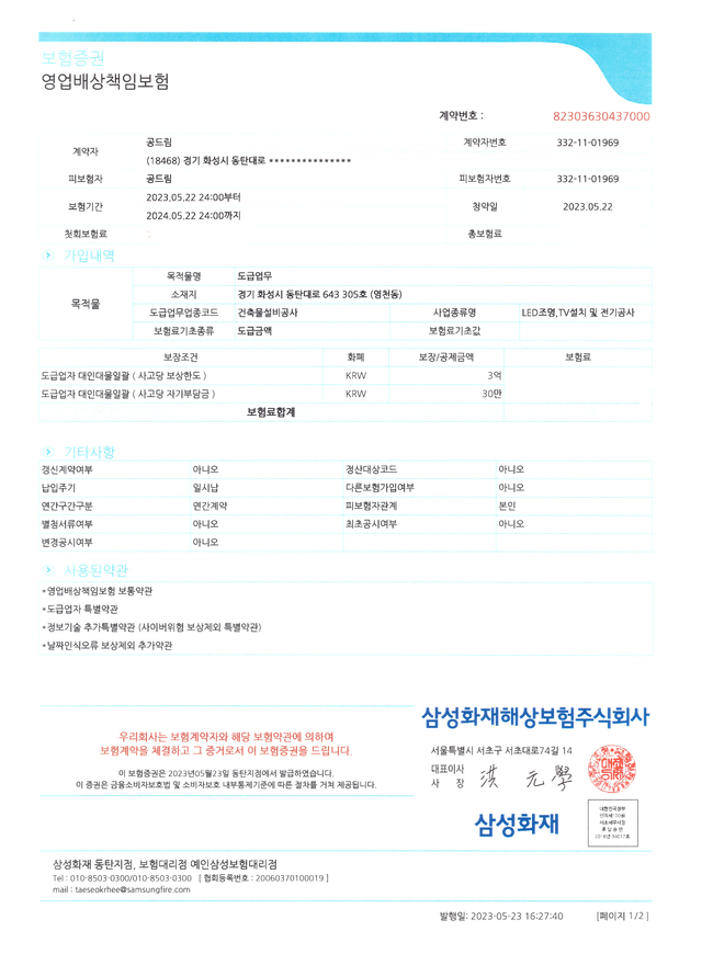영업배상책임보험 3억원 가입