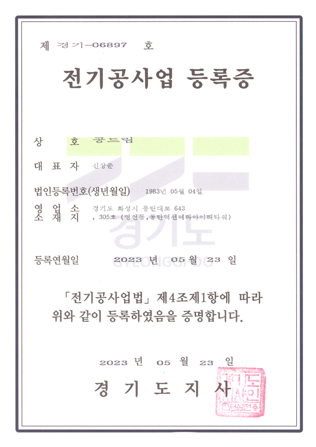 ‘전기공사업 등록증’ 허가 업체