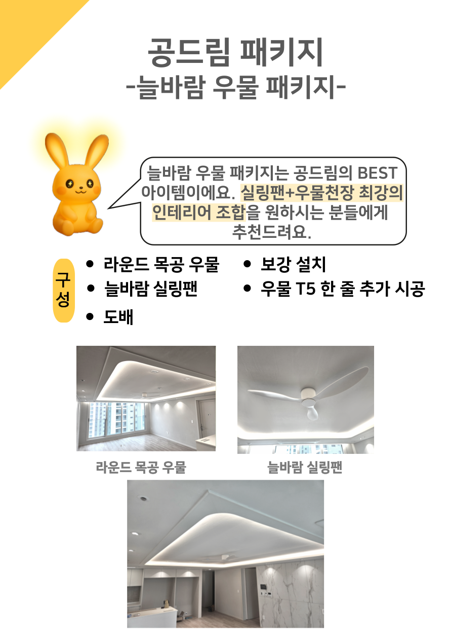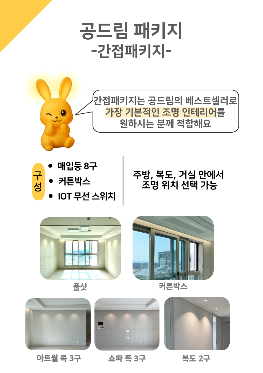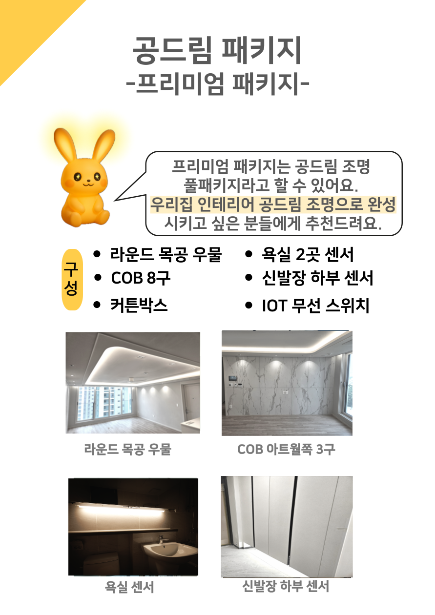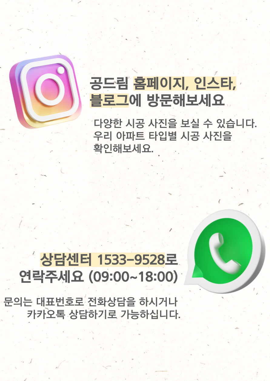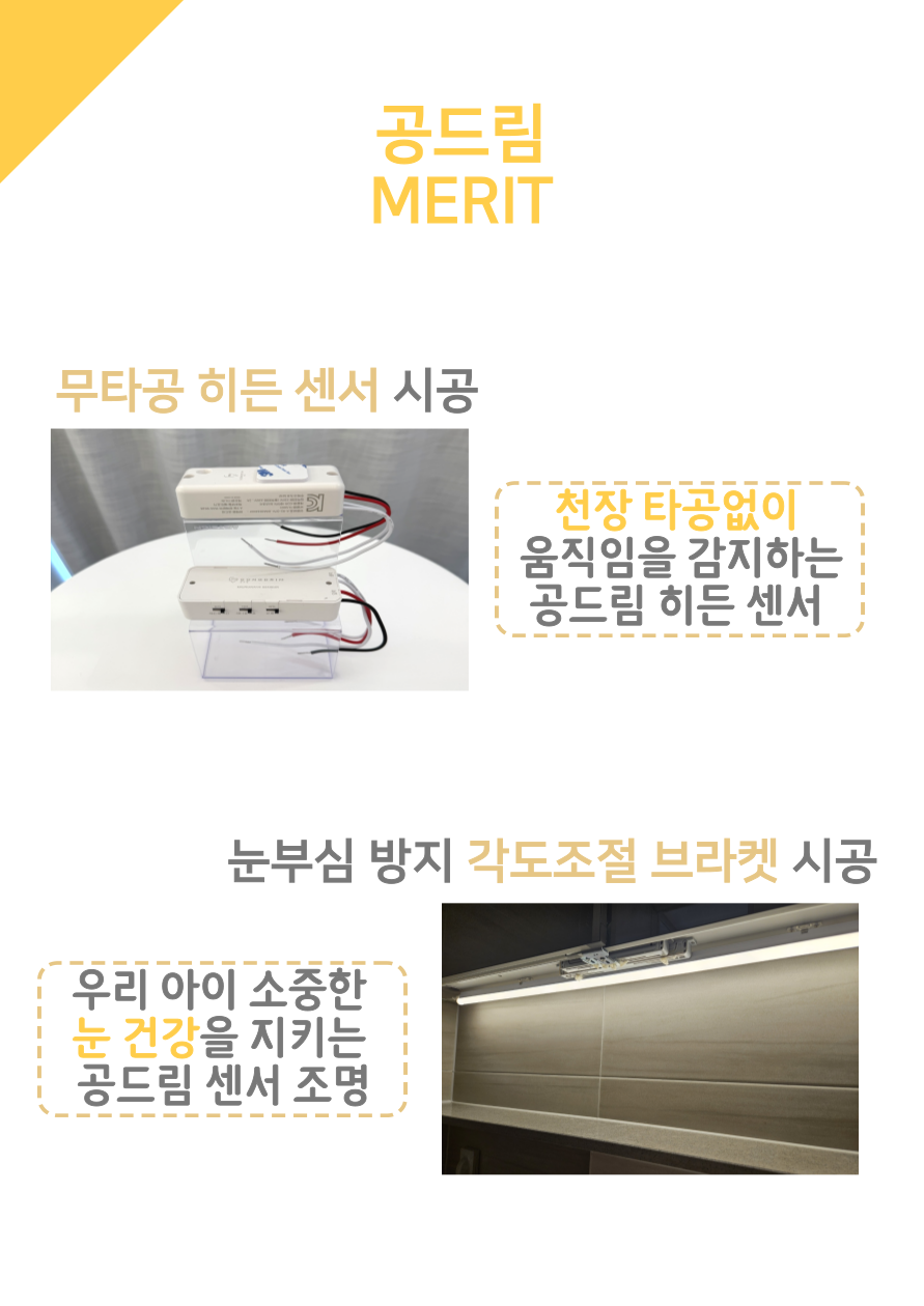 저희 공드림은 뛰어난 기술력으로 LED조명부터 벽걸이TV, LED시계, 콘센트 증설 등 원스톱으로 시공하시고 싶은 품목을 한번에 시공 받으실 수 있습니다.
