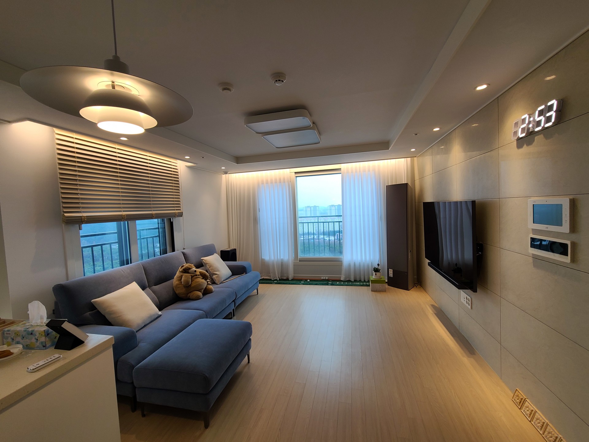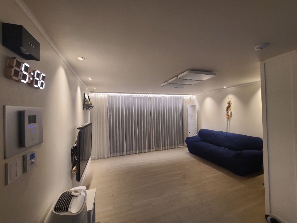 커튼과 블라인드 사이 LED불빛이 스며들어 편안한 불빛이 만들어집니다.