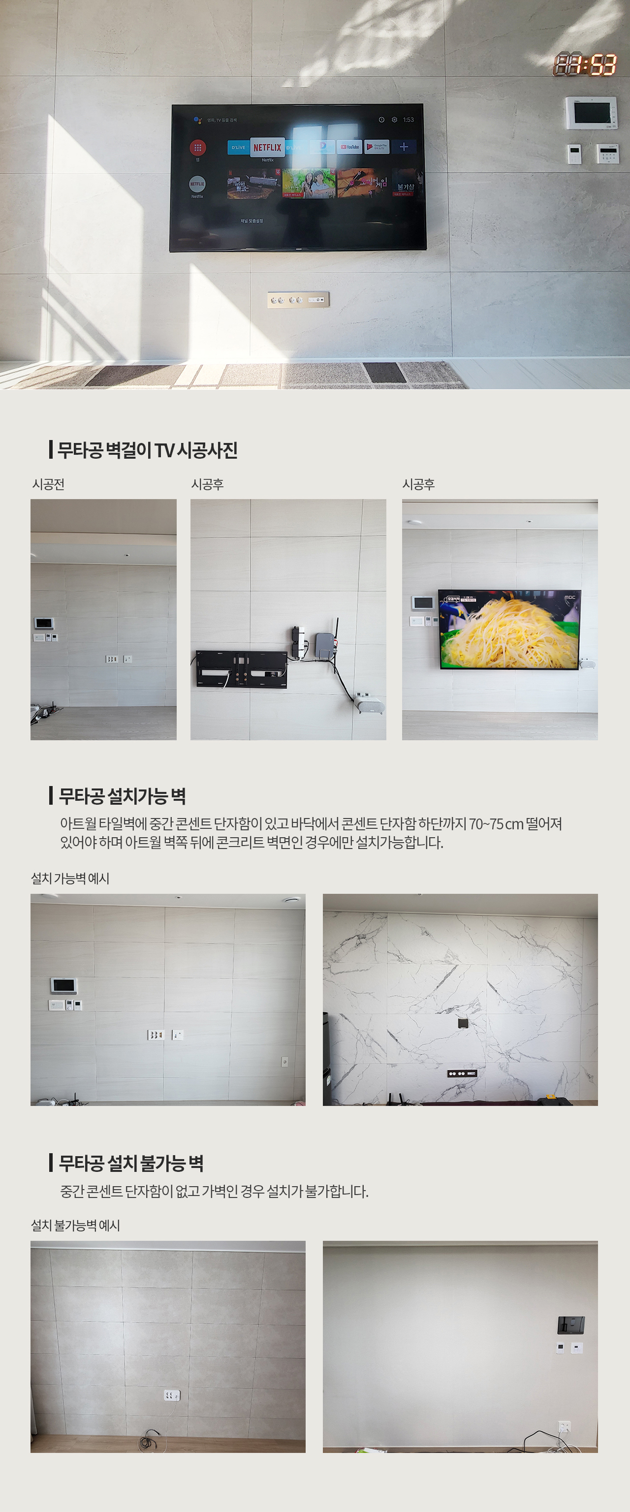 기존 아트월에 손상없이 설치합니다.